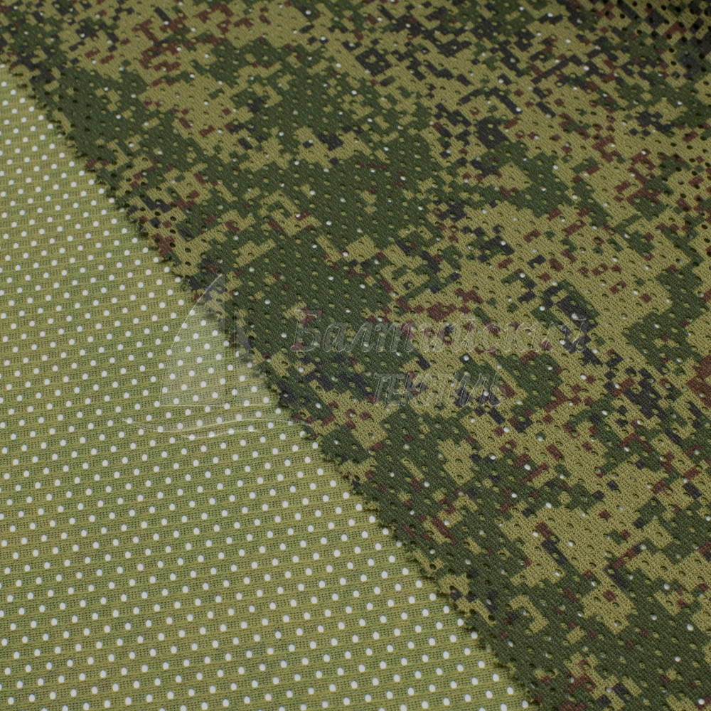 Камуфлирующая трикотажная сетка CD4-110 предназначена для производства легких летних костюмов, а также идеально подходит для пошива ветровок, футболок, может быть использована как подкладочный материал.